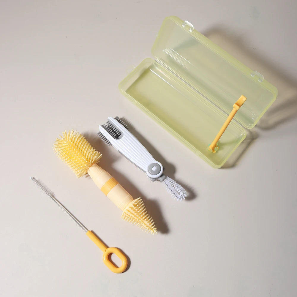 4-in-1 Baby Bottle Cleaning Brush Set – Portable Silicone Brush with Pacifier & Straw Cleaner